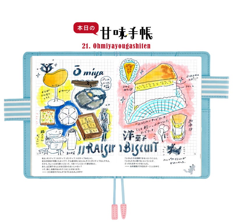 If you have purchased / are considering purchasing the Omiya Yogashiten covers, I hope it brings a smile to your face by looking at the calming pastel illustrations, as well as their yummy-looking sweets!
