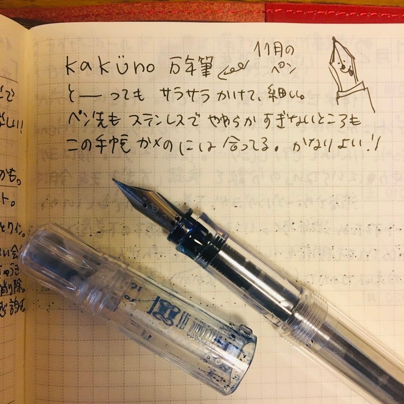 In my first year, I changed the pen I used every month to see which pen goes the best with the 5-Year Techofs paper. After trying out various pens, I found that the kakuno Fountain Pen worked best for me, so I have been using it from the second year onward.
