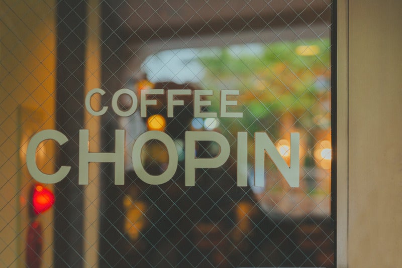Actually, the founder didnft know much about Chopin or classical music in general. The reason why it was named gChopin,h however, was because a salesperson of a vinyl shop thought their vinyl albums will sell well if this cafe played lots of classical music, so they insisted it should be named gChopin.h