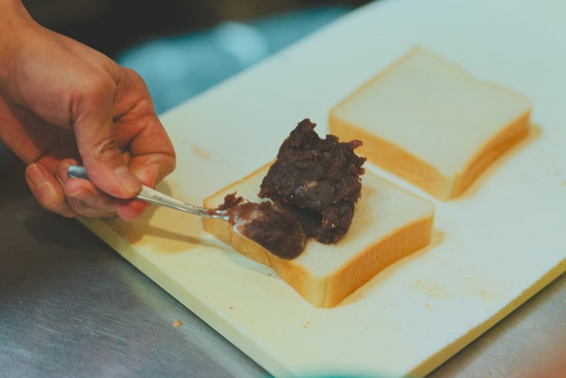 The toastfs thickness is 2cm. Anko (red bean paste) is heaped on.