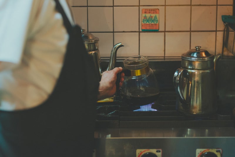 Chief Nobuhiro Sasaki, who makes coffees and light meals, has worked here for 49 years.
