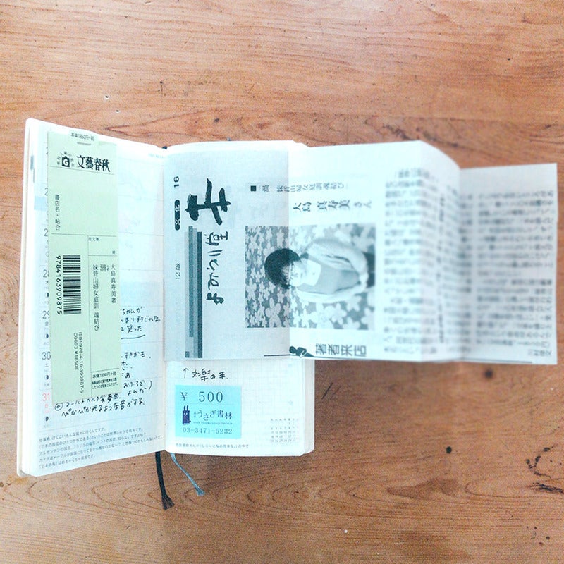 Therefs nothing special in the way I use it, but I chose to write the title of the piece and my quick thoughts on it on the left page, and paste tickets, sleeves of the books I bought, and cutouts of newspaper book reviews on the right page.
