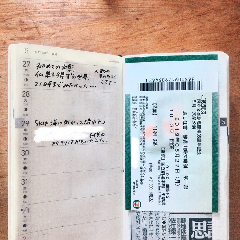 I used to write a diary in the A6 Original techo, but because I switched to the 5-Year Techo, I was in need of a place to paste tickets and small bits and pieces, so that would be another reason why,