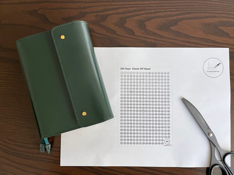 The Download City has lots of pages you can print out and paste to the memo pages at the back (or anywhere you want). To customize my techo for next year, I decided to print out and paste the 365 Days: Check-Off Sheet!
