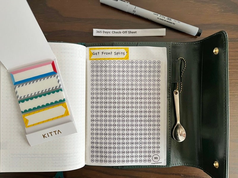 You can also cut off the title at the top to create some space to write down your own title. I wrote down my goals "Get Front Splits!" on the Kitta (Frame 2) to make it stand out.
