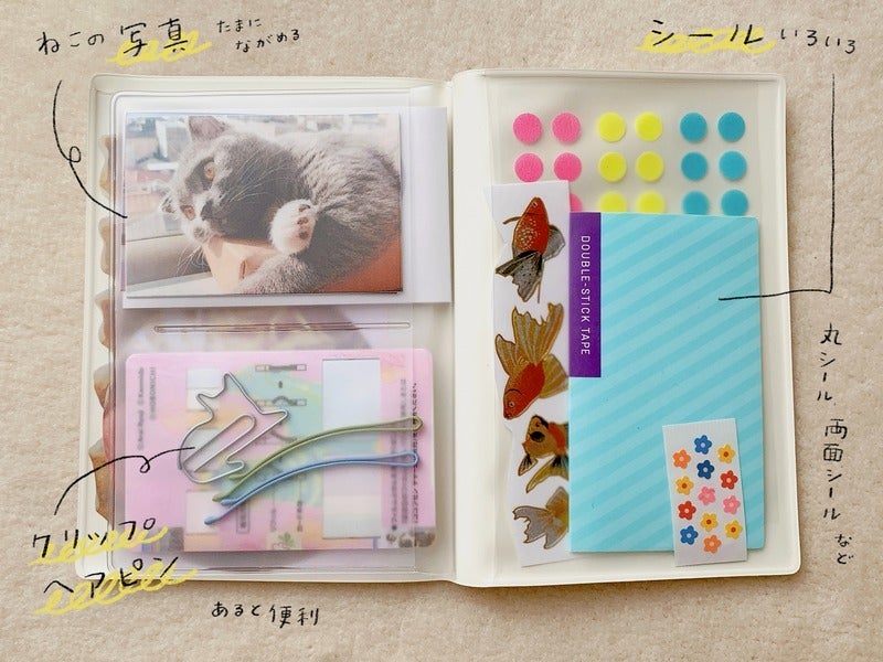 ¥It has sturdy vinyl pockets perfect for small stationery items that otherwise end up scattered.