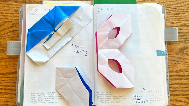 Because my room will be filled up with origami at this rate, I paste origami from my son that I especially like in my techo. By pasting them in, it has turned my techo into a treasure box.