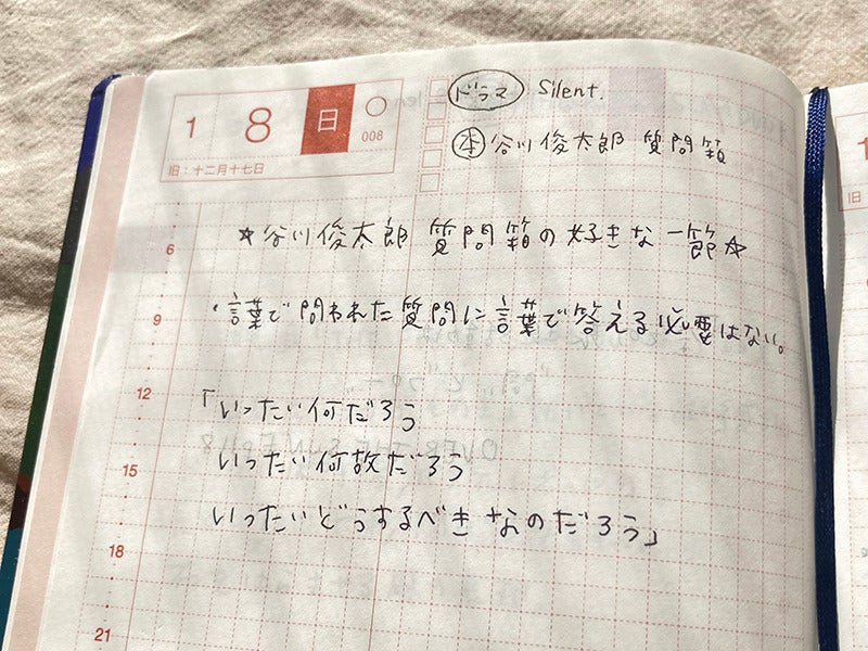 There was a phrase I found by doing so from January 2021. They were words by Jun Miura, who had appeared in a newsletter published by Hobonichi.