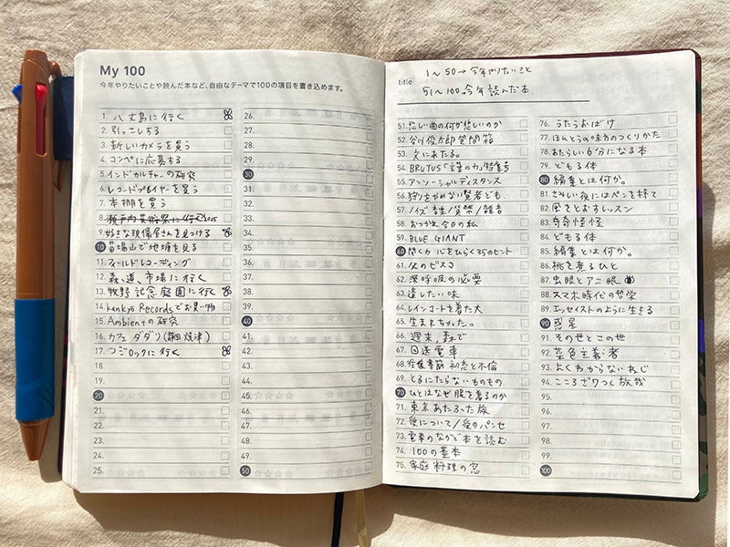 I used No. 1-50 to write down my bucket list, and 51-100 to write down the books I read