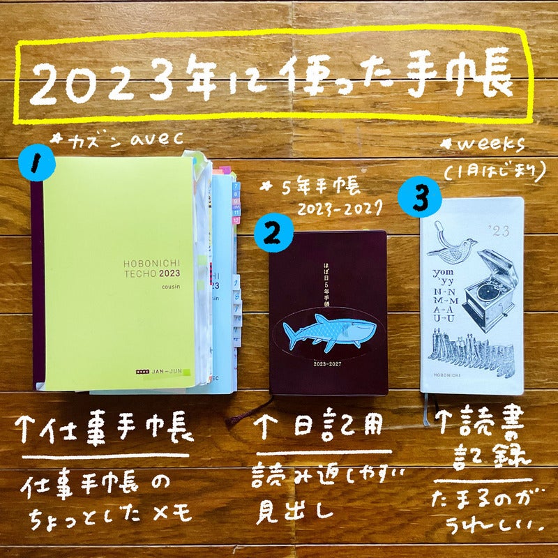 Techo I used in 2023: 1. Work techo / 2. Diary / 3. Reading record