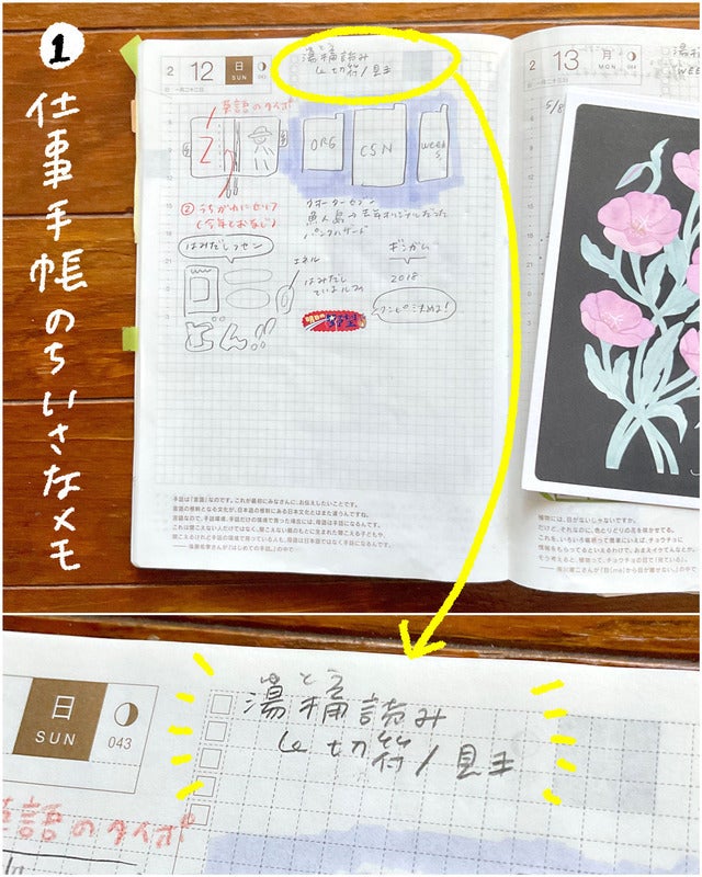 I use the Cousin Avec to keep work memos. On the To-do list on the top right of each daily page, I wrote down small things that left an impression on me.