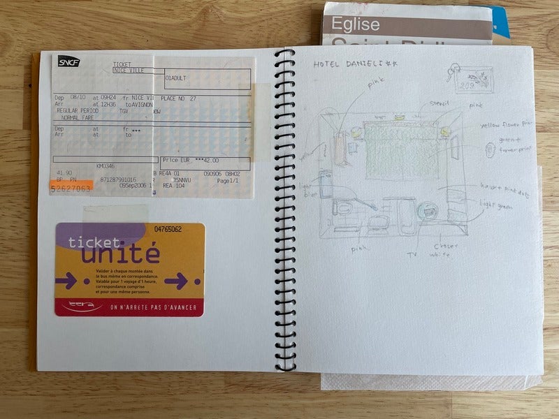 This is a travel notebook that I have been keeping for a long time. It is from 2006 when I visited France (that was a long time ago!).