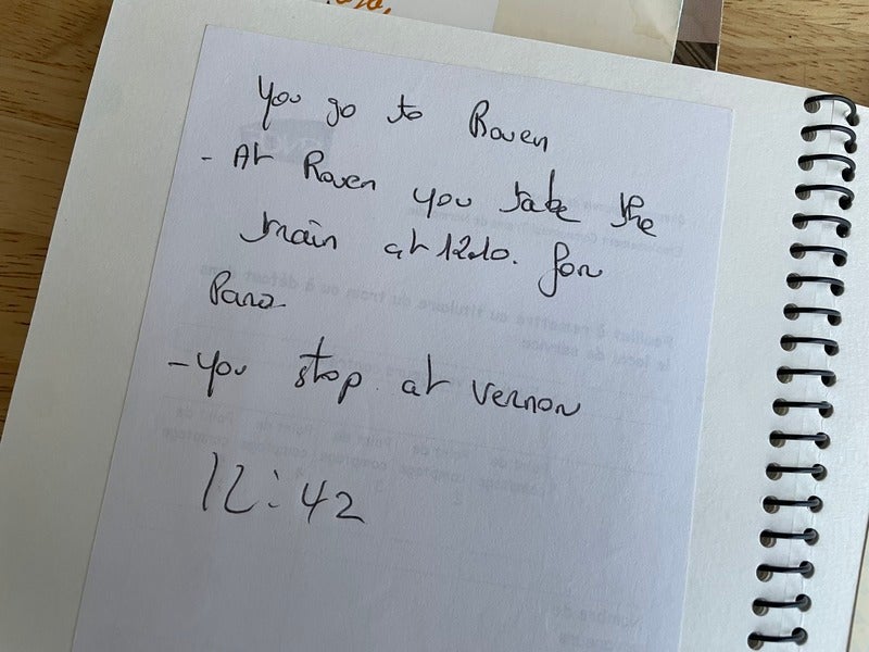 Back then, there were no smartphones or e-tickets. I was heading for the house in Giverny where Monet was born but took the wrong express train. When I got off, the station staff wrote me a note about the train I was supposed to take (the photo with the handwriting shows the note).