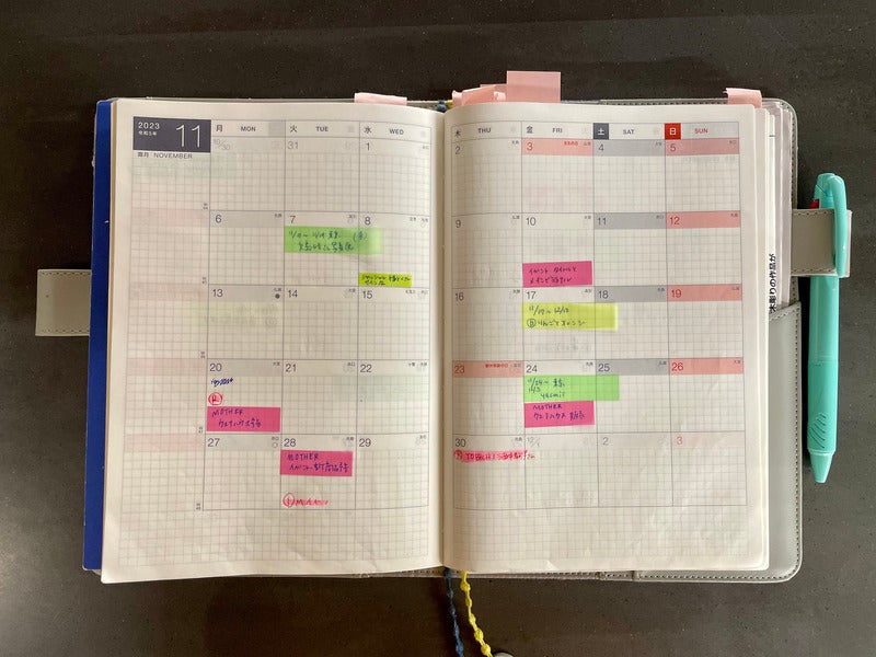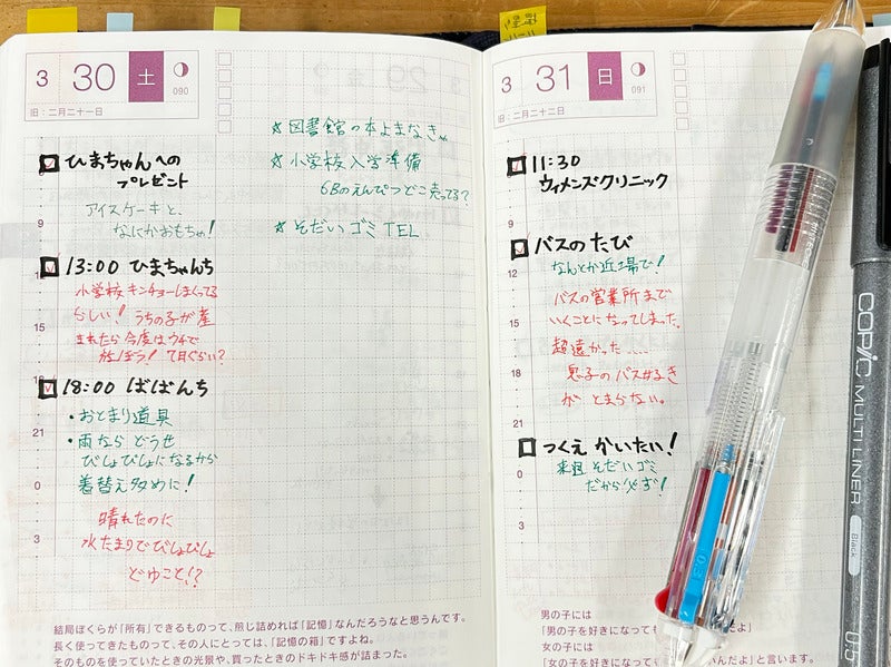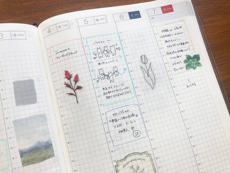 ^Because she writes future plans, she writes them on the Hobonichi Translucent Sticky Notes so she can move it around when the schedule changes.