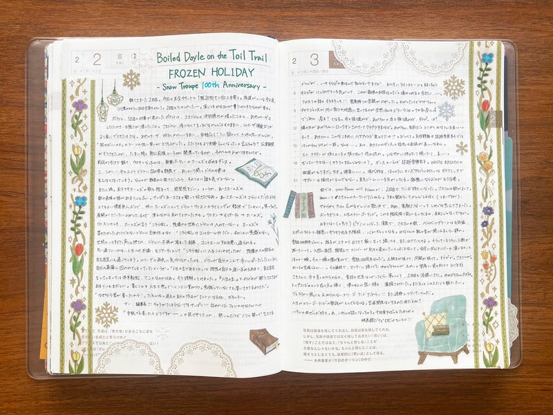 When I go see a Takarazuka Revue, I make sure I write a lot and use the spread like this...A page from when she went to see a show in January