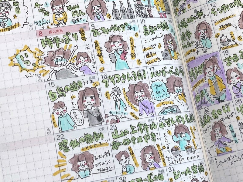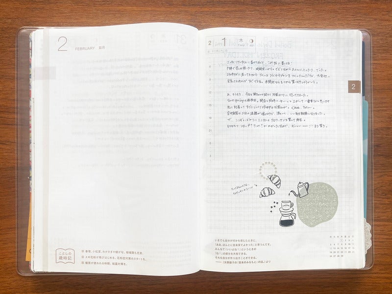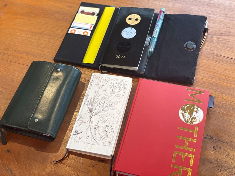 gIn my 2023 Day-Free, I write down work memos that I have done since last year. This year marks the 30th anniversary since the sales of the MOTHER 2 game, so therefs a lot going on. Thatfs why I decided to use my 2024 Day-Free solely for MOTHER and write all kinds of things here. Because the Day-Free has monthly calendars, itfs easy to link schedules with memos compared to a normal notebook!h