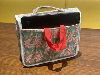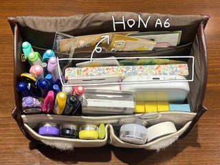 In the far back pocket, she stores her drawing tablet and an Everlasting Bag, which is a Hobonichi Store Exclusive.