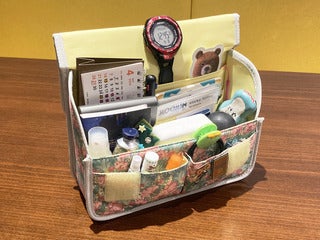 Melonfs Stappo stores relaxing items, moisturizer, hand sanitizer spray, and other frequently used items. During work hours, she takes off her watch and hangs it over the Stappofs cover.