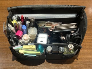 I also use the Black Stappo. I store chargers and cords, a number pad, headphones, and other gadgets I use often. It also allows me to keep my lipstick, nail file, hand cream, face mist, and other moisturizers in one place for handy access.