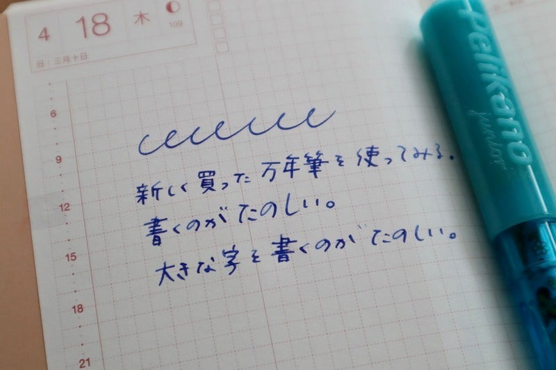 And even though itfs thin, it writes smoothly. The pen feels like it just glides across the paper, so itfs satisfying to write with. I feel like my long writing entries might get even longer at this rate.