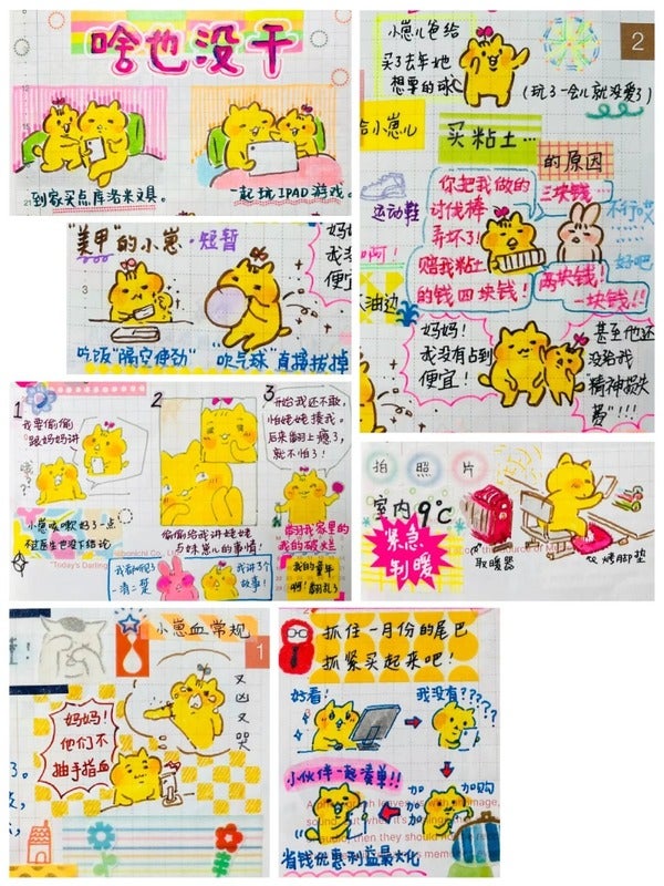 A memo from when she learnt how to bucket relay efficiently. She uses the free space to paste her favorite stickers.