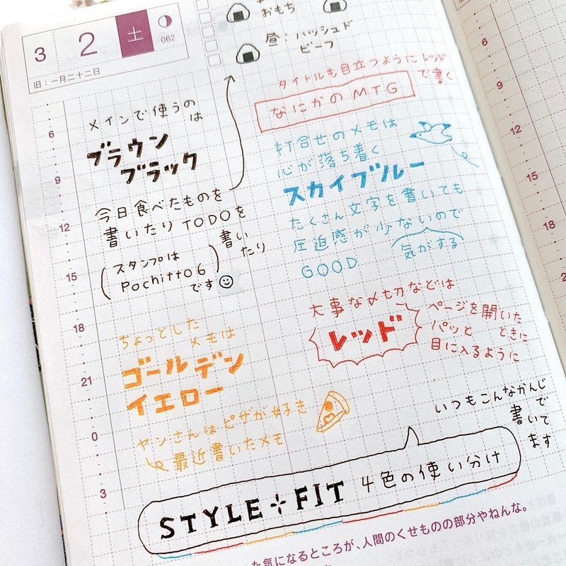 gIfve tried out various book types such as the Original and Weeks, and decided to try out the A5 size Day-Free the year before last. However, because I used up the memo pages, I bought my second Day-Free around August.