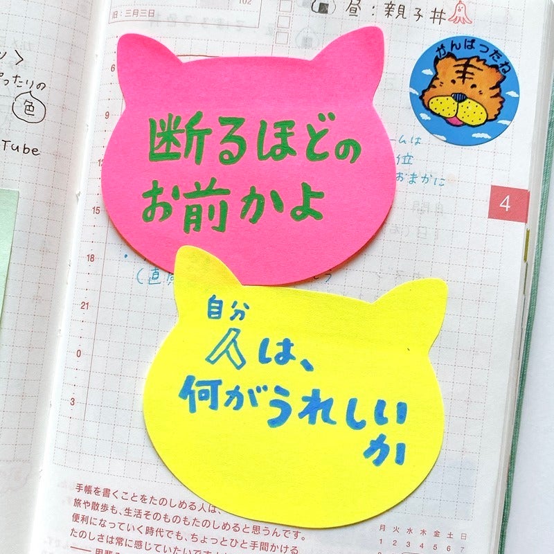 Lately Ifve been really into pairing the MATTEHOP pen with cat-shaped sticky notes. (I bought the cat sticky notes at the 100 yen shop.)