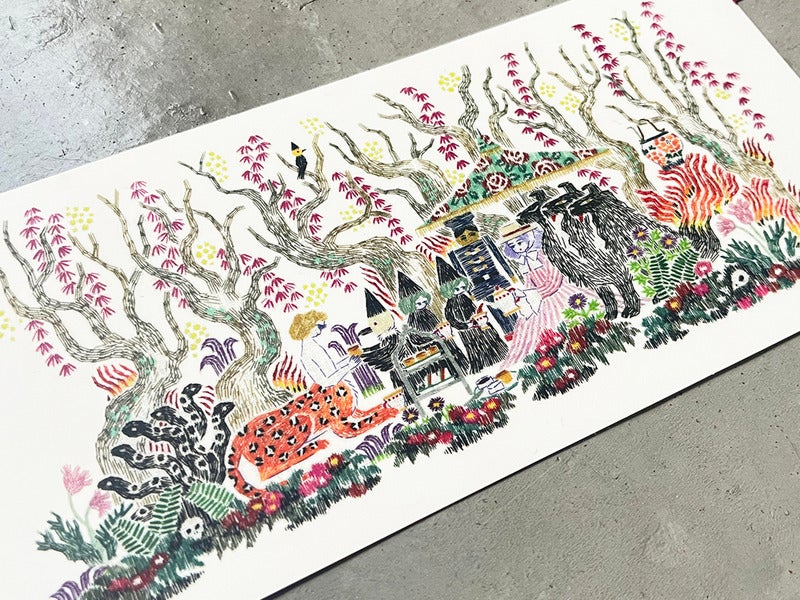 Annen, who oversaw this collaboration on the Hobonichi Techo team, was deeply inspired by Tolightfs work and proposed the project. She experimented with many approaches to preserve the vivid colors and expressive brushstrokes of Aoyamafs original artwork.