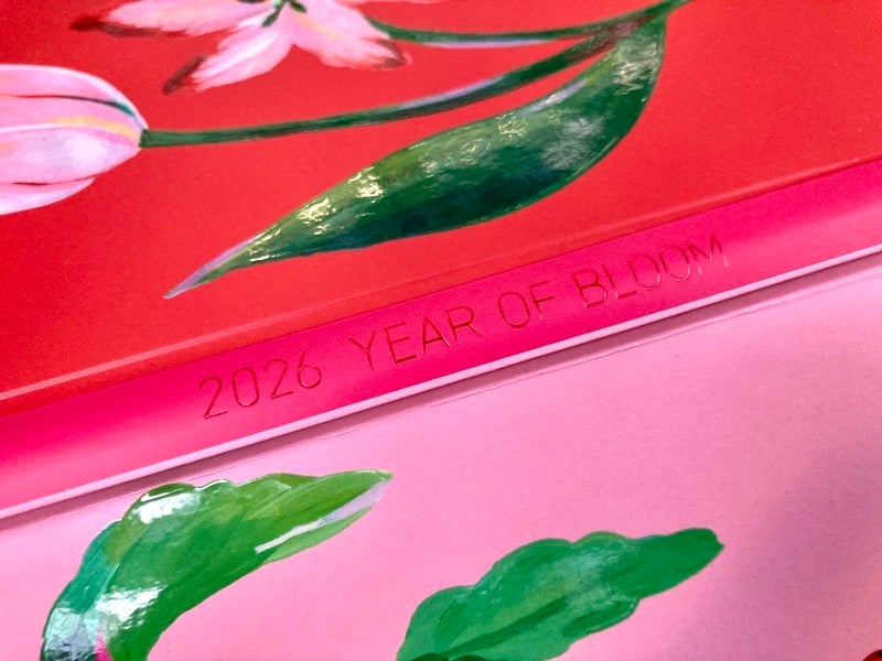 On the spine, the message g2026 YEAR OF BLOOMh shines subtly—chosen with the wish for a bright, blossoming year.