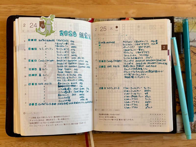In 2025, I used the One Piece Edition Original Techo with the Going Merry Logbook leather cover, as well as the Hobonichi 5-Year Techo.