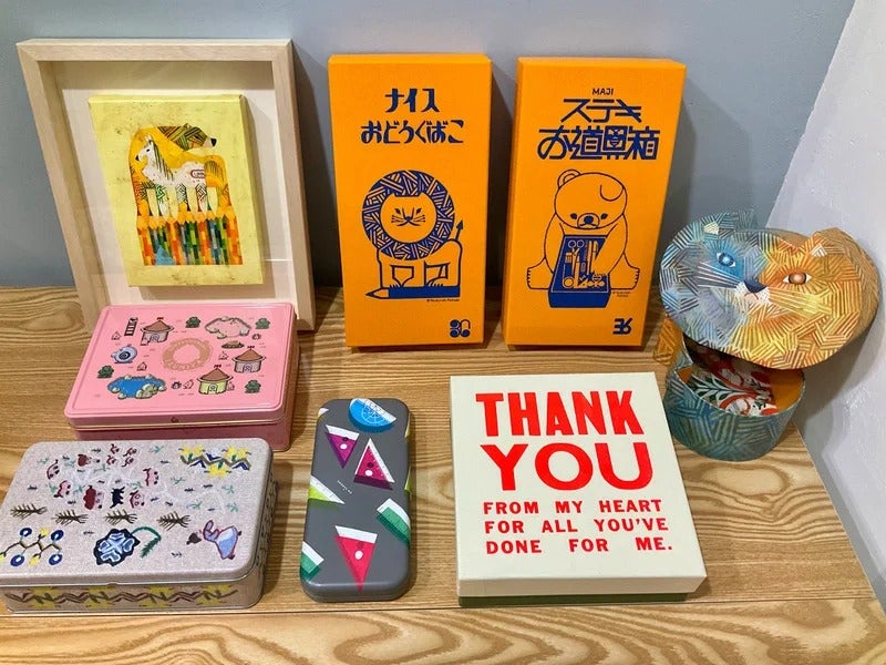 I had the chance to talk with the studio staff quite a bit while staffing the letterpress shop during last yearfs Joy of Life exhibition. Apparently, even the text on these snack boxes is printed using letterpress!