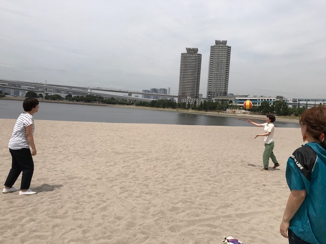 お台場の砂浜で、