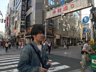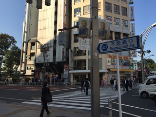 上野教授とハチ公像