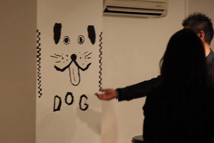 この壁にテープで描かれた「DOG」は、