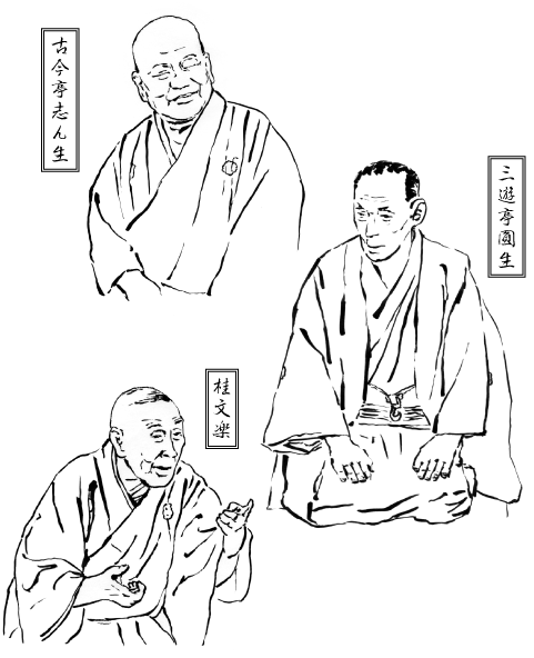 「井戸の茶碗」,「宿屋の富」,「首提灯」