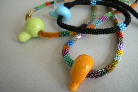| shino | それで、ビーズのほかに、 陶芸もしていて、 ──それはいまも続けているんですが──、 他のガラスづくりもしてたので、 そちらに夢中だった時期がありました。 けれど、しばらくしたら、チェコの友達がまた 「ビーズがこんなにたくさんあって もったいないから、使えば?」って 持ってきてくれたんです。 かと思ったら日本の友人からも、 「もったいないから、 もう一回つくったほうがいいよ」って声が。 「もし今度チョーカーをつくるんであれば、 もう少し万人の人がつけやすいものをつくれ」 ってアドバイスもしてくれました。 |