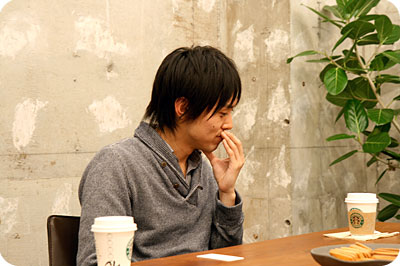 | 白岩 | でも、人間の意識って、なにかの風景を そんなに鮮明に認識してないですよね。 もっと、いい加減なもんでしょう? だから、景色とか状況を 綿密に描写している小説があるとして、 もちろんそれはそれで読む側からすると すごいなとは思うんですけど、 読んでいて、ついていけなくなるときもあるし、 そもそもそんなに意識しいへんやろ っていうような気持ちもあるし。 なんか、そのあたりが、自分が小説を読んでて つねに引っかかる部分なんですよね。 だからぼくは背景として見えてるものを そんなに書かないんですし、 もっと人間の意識に沿った書き方が できるんじゃないかと思っているんです。 |