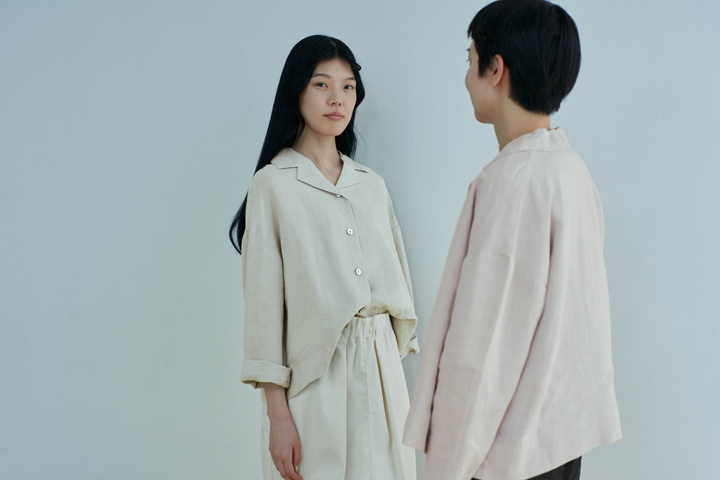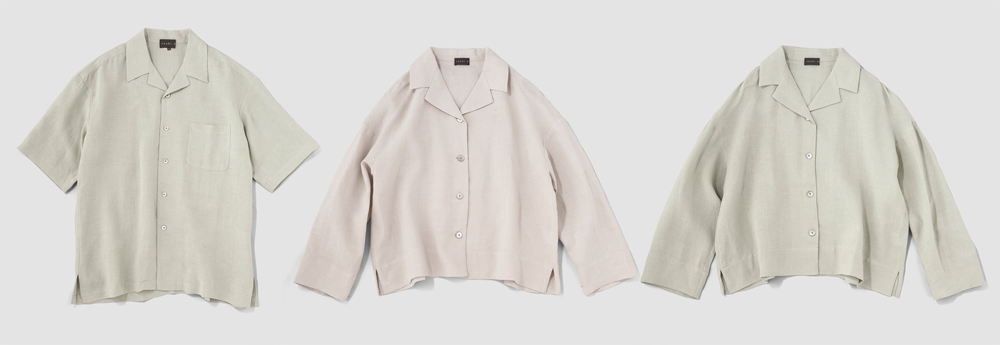tsuki.s レディス リネン オープンカラーシャツ