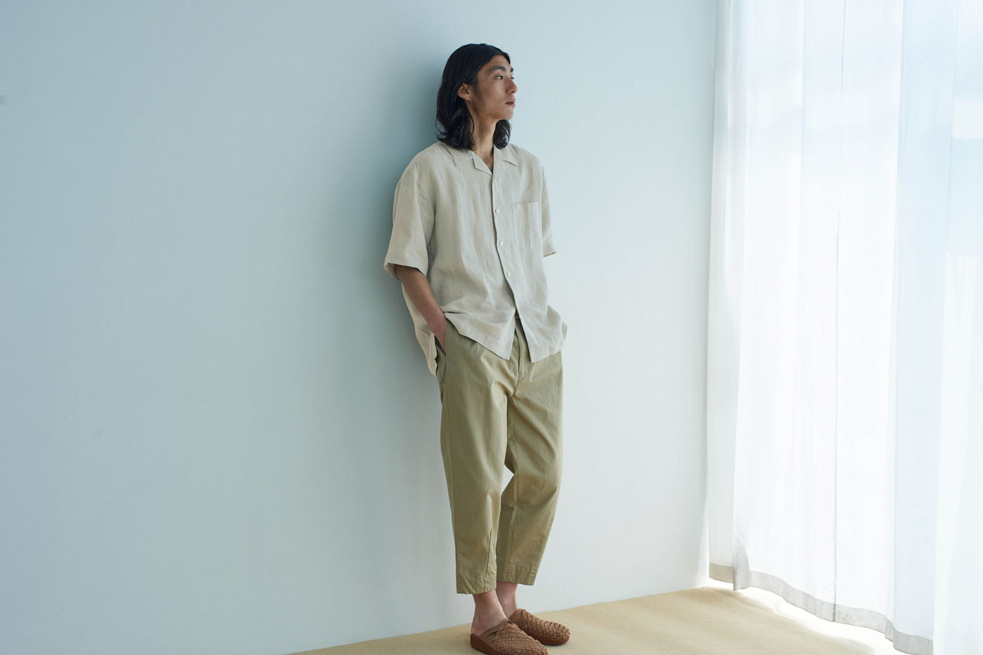 tsuki.s メンズ リネン オープンカラーシャツ