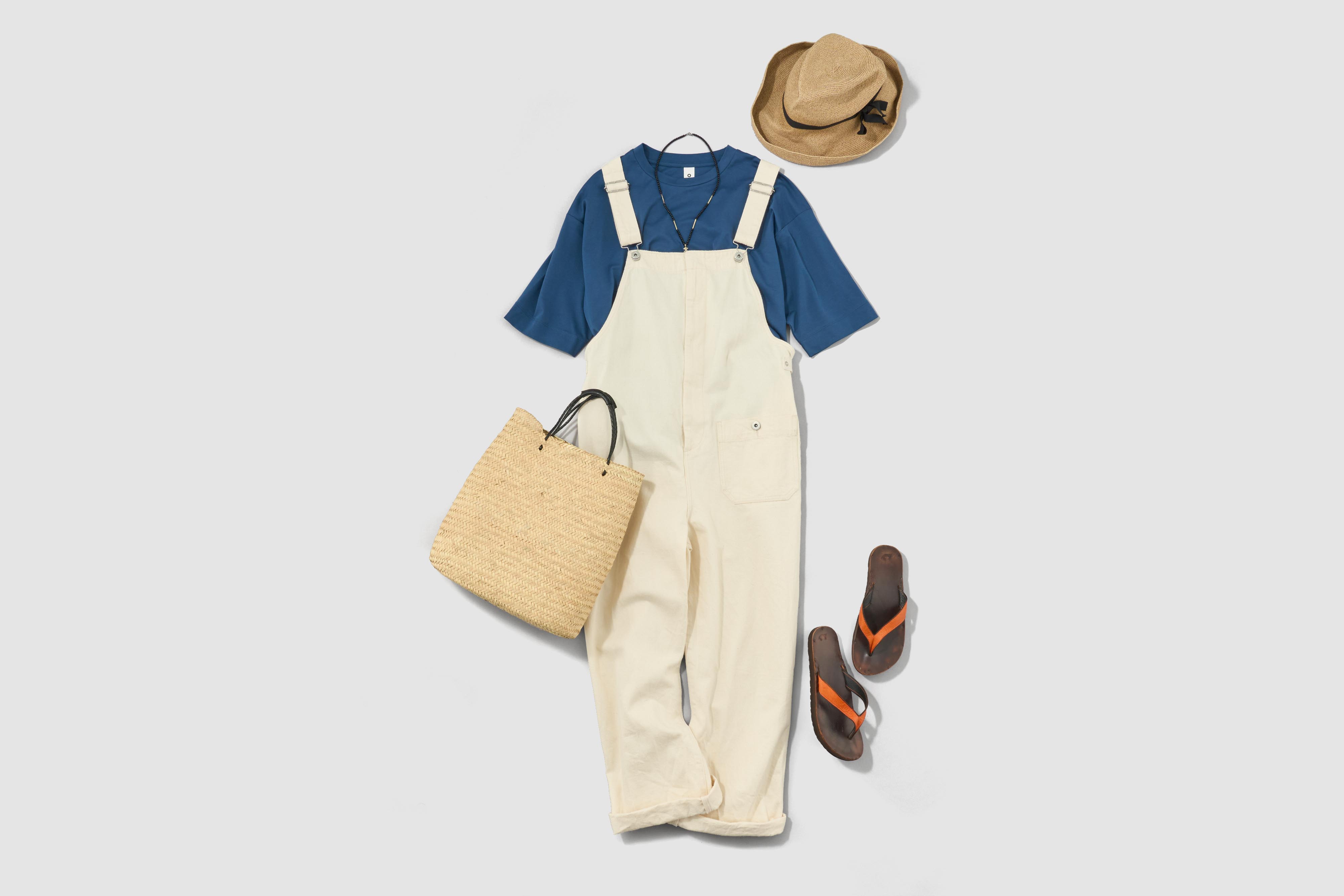 麦わら帽子に真っ白なオーバーオール。