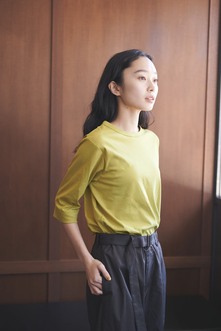 Tシャツはすっきりしたかたちですが、