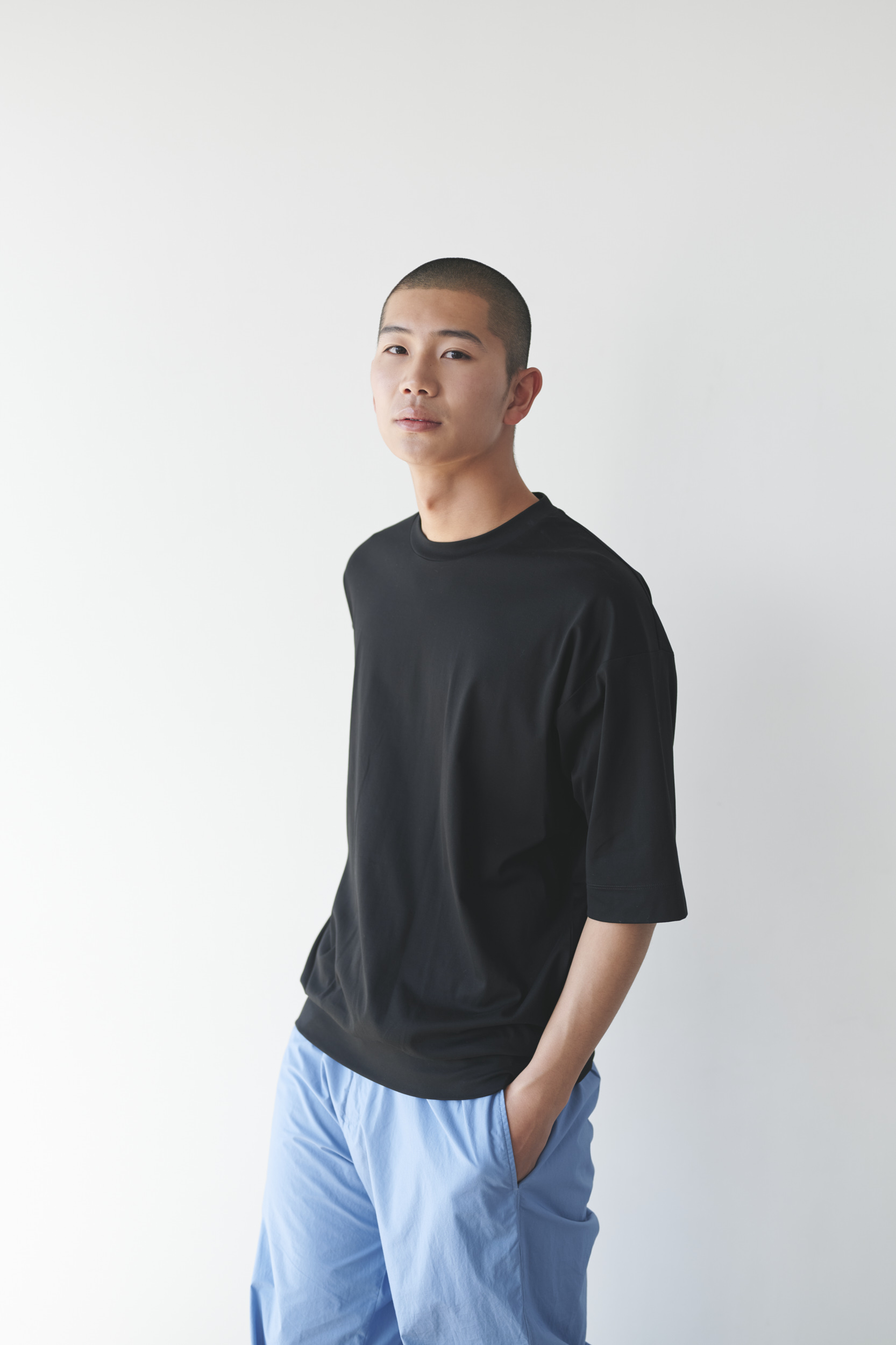 Tシャツのアッシュブルーが