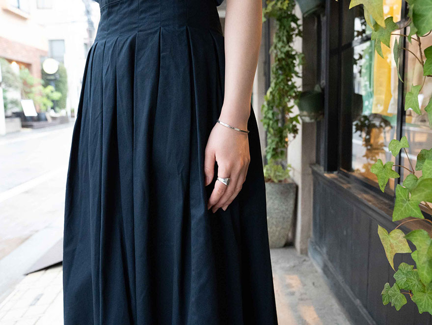 裾に向かってふわりと広がるシルエットだから、