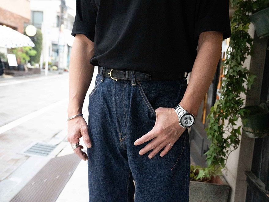 さらに、Tシャツの裾をタックインして