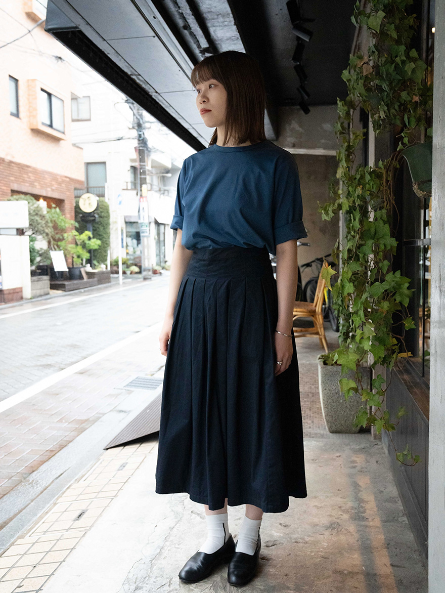 Tシャツの青の色味がとても上品なので、