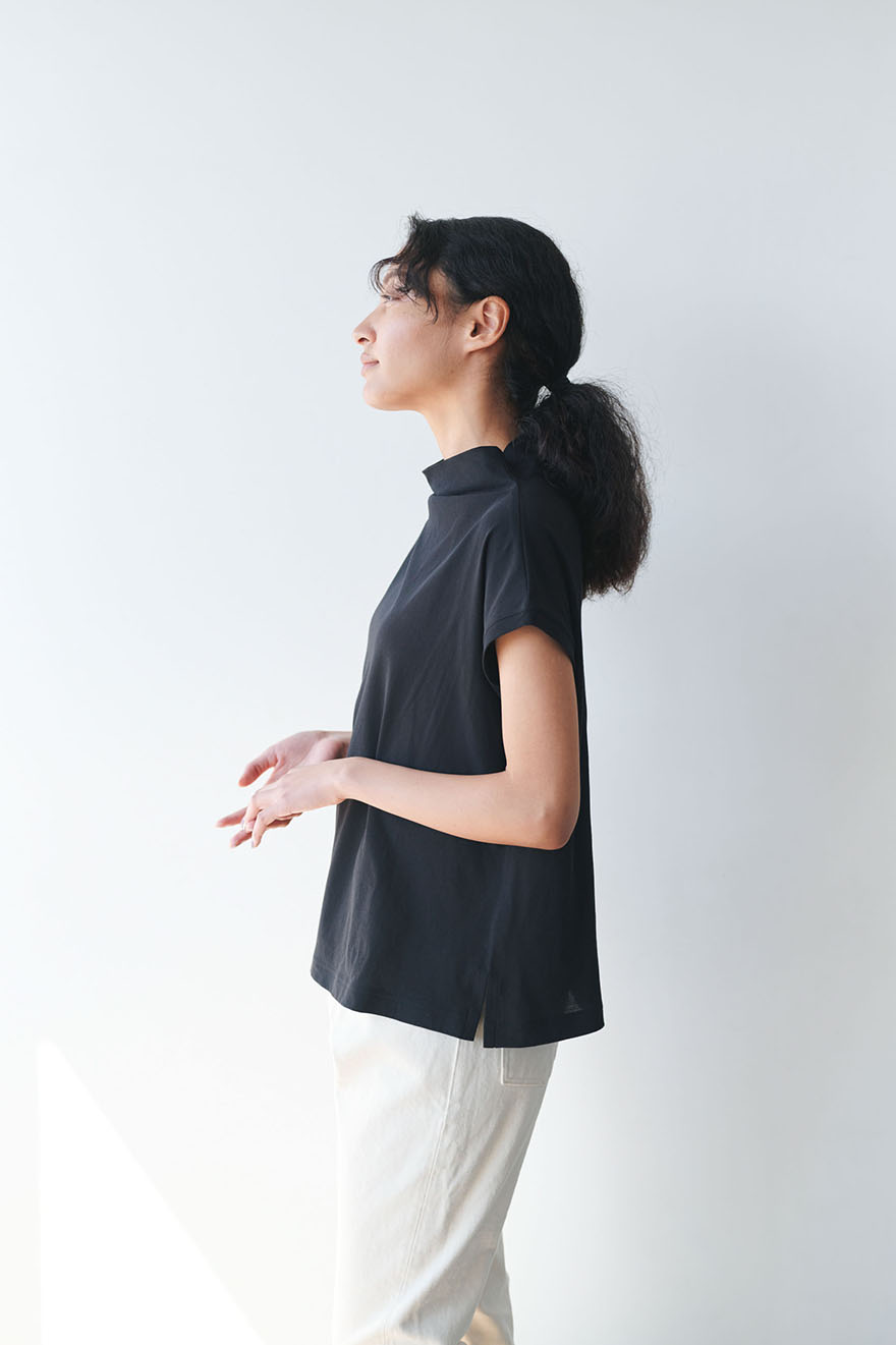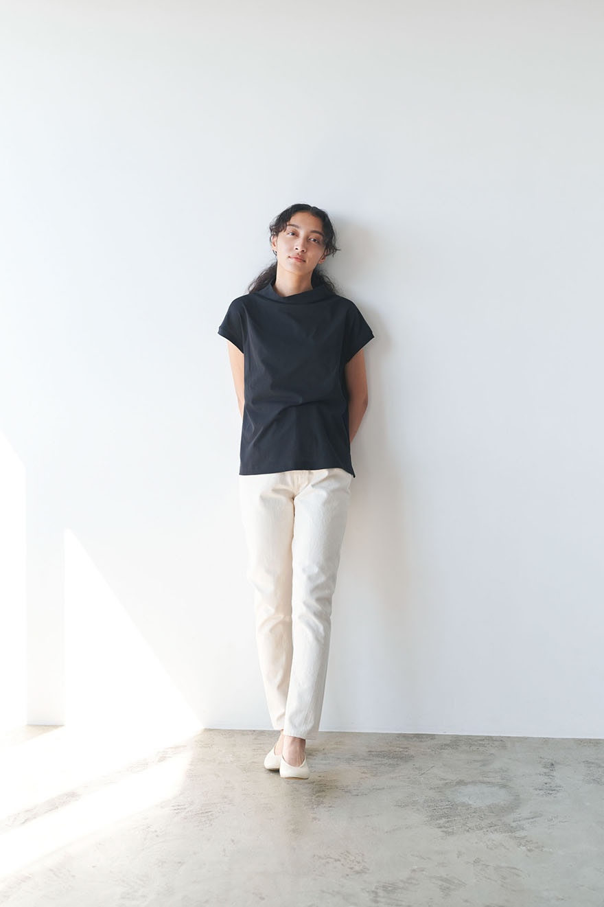 このカットソーの特徴でもあるボトルネックは