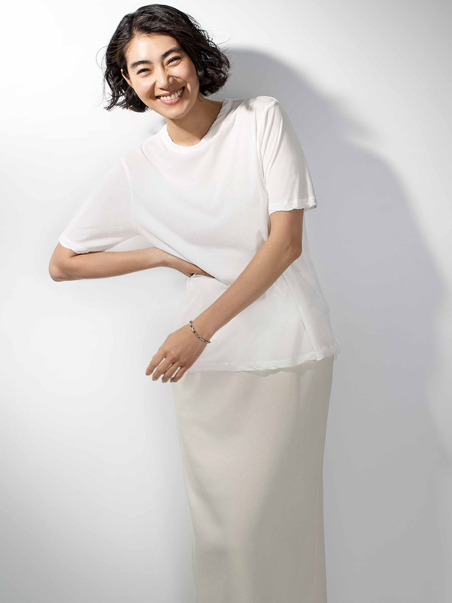 1枚で着たときには鎖骨が美しく見えて、