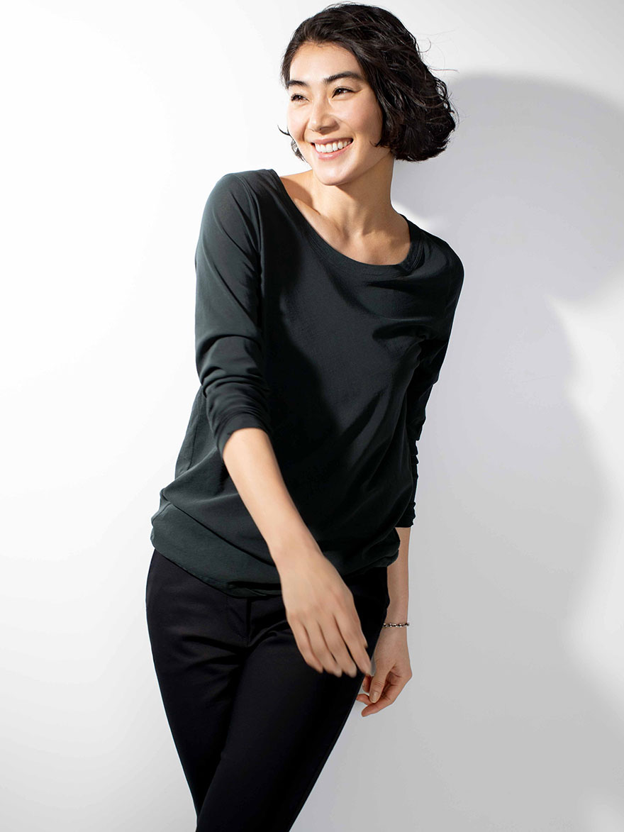 こちらのオープンネックカットソーもおすすめです。
