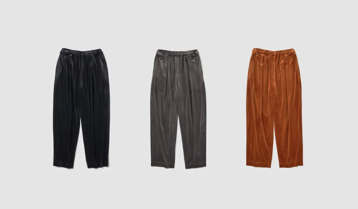 「かっこよさ」も「穿き心地のよさ」もあきらめない、 両立した秋冬のボトムスがほしい。 そんな思いから、昨年誕生した 「コンフォートドレスパンツ」。 ほどよくゆったりとしたシルエットと、 総ゴム+紐仕様のウエストで、着心地はストレスフリー。 ベロアの落ち感と光沢、揺れるドレープのおかげで、 上品で大人っぽい印象に仕上がったこのパンツは、 発売直後からたいへんご好評をいただきました。