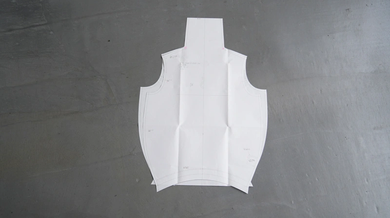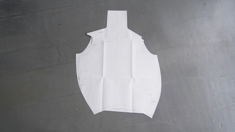 白井 そこから、この型紙に合わせて生地を裁断するんですが、 切った瞬間に生地がひょいっと動くからまた大変なんです。 肩の生地も斜行するので、 ちょっと後ろに重心を置かないといけなくて。